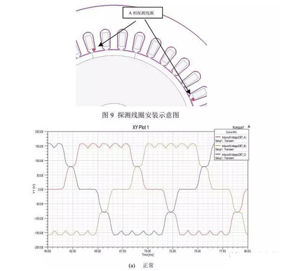這樣做可以減小故障診斷系統(tǒng)的成本,減少相應(yīng)的電壓傳感器數(shù)量。該方法的檢測(cè)原理為:當(dāng)電機(jī)旋轉(zhuǎn)時(shí),旋轉(zhuǎn)的氣隙磁場(chǎng)會(huì)在三104個(gè)探測(cè)線(xiàn)圈中產(chǎn)生電壓,通過(guò)檢測(cè)各個(gè)線(xiàn)圈電壓的幅值和波形,可以得知?dú)庀洞艌?chǎng)的變化,進(jìn)而達(dá)到檢測(cè)電機(jī)故障的目的。這種線(xiàn)圈能免受高頻諧波的干擾,故障特征明顯,因此非常適合由逆變器供電的電機(jī)系統(tǒng),另外,這種方法不需要知道電機(jī)的參數(shù)。由于探測(cè)線(xiàn)圈直接檢測(cè)電機(jī)的氣隙磁場(chǎng),該方法的診斷結(jié)果準(zhǔn)確可靠。